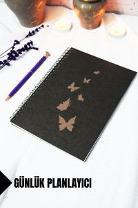 A5 Kelebek Temalı Siyah Kraft Kapaklı Defter - Günlük Planlayıcı - 45 Yaprak (90 SAYFA) 15x21 Cm