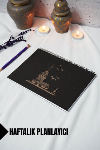 A5 Kız Kulesi Siyah Kraft Kapaklı Defter - Haftalık Planlayıcı - 52 Yaprak 15x21 Cm - Istanbul