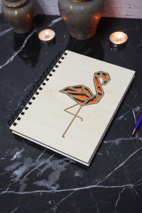 Flamingo Figürlü Ahşap Kapaklı Defter - Çizgisiz Defter - Günlük - Ajanda- A5 Anı Defteri