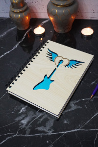 Gitar Kanat Temalı Ahşap Kapaklı Defter - Çizgisiz Defter - Günlük - Ajanda- A5 Anı Defteri