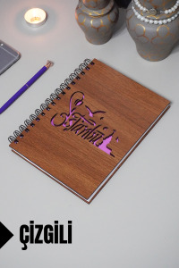 İstanbul Yazılı Ahşap Kapaklı Defter - Çizgili Defter - Ajanda - Okul Defteri (A5 - 120 Sayfa)