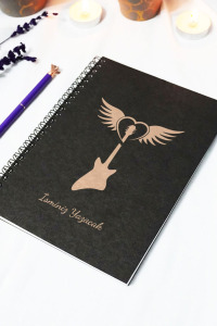 Kişiye Özel Gitar Temalı Siyah Kraft Kapaklı Defter - 45 Yaprak A5 (90 SAYFA) 15x21 Cm