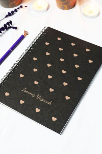Kişiye Özel Kalp Temalı Siyah Kraft Kapaklı Defter - 45 Yaprak A5 (90 SAYFA) 15x21 Cm