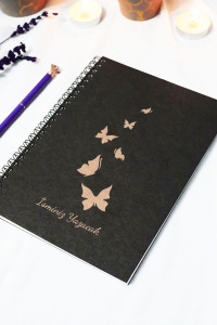 Kişiye Özel Kelebek Temalı Siyah Kraft Kapaklı Defter - 45 Yaprak A5 (90 SAYFA) 15x21 Cm