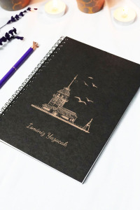 Kişiye Özel Kız Kulesi Temalı Siyah Kraft Kapaklı Defter - 45 Yaprak A5 (90 SAYFA) 15x21 Cm