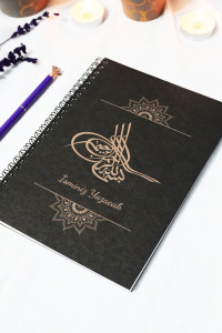 Kişiye Özel Osmanlı Tuğrası Temalı Siyah Kraft Kapaklı Defter - 45 Yaprak A5 (90 SAYFA) 15x21 Cm