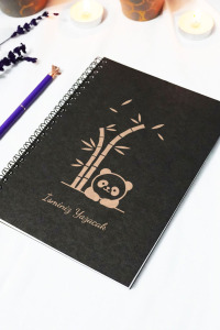 Kişiye Özel Panda Temalı Siyah Kraft Kapaklı Defter - 45 Yaprak A5 (90 SAYFA) 15x21 Cm