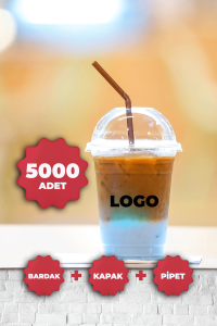 5000 Adet Logo Baskılı Plastik Bardak Milkshake Bardağı 470 Cc - 16 Oz - Soğuk Içecek Bardağı