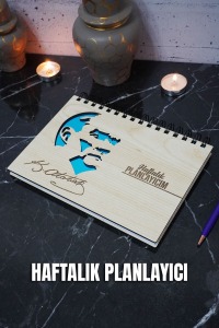 Mustafa Kemal Atatürk Ahşap Plan Defteri - Tarihsiz Ajanda - Haftalık Planlayıcı - A5