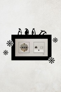Penguen Ve Kar Tanesi Tasarımlı 2li Priz Çerçevesi (İÇ ÖLÇÜ 15,5X8,4 CM) Dekoratif Priz Çerçeve Süsü